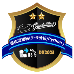 日本新薬では、デジタル人財育成戦略として選抜型DXスペシャリスト育成教育を実施しています。データエンジニアリング力を強化することを目的として、初級編:基礎学習「データ分析/Python初級コース」の研修を修了したことを証明します。