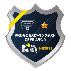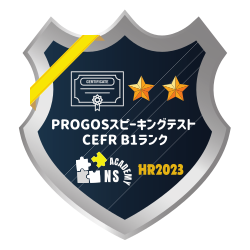 英語スピーキングテスト「PROGOS」を受検し、実践的なビジネスシーンを踏まえた英語スピーキング能力を測定した結果、当ランクを獲得したことを証明します。
